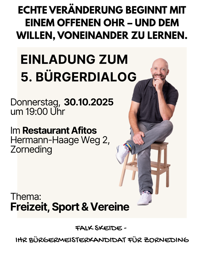 Hier finden Sie den Zugang zu allen neuen Informationen aus Zorneding. Das Portal wird vom Zornedinger Förderverein Sport & Kultur e.V. betrieben, unterstützt durch die Gemeinde Zorneding. Informierte Reporter berichten aus verschiedenen Themenbereichen die neuesten Nachrichten aus Zornding. Abonnieren Sie gleich per E-Mail die neuesten Informationen. Eine eigene App für das Smartphone ist gerade in der Entwicklung und wird dann freigeschalten.