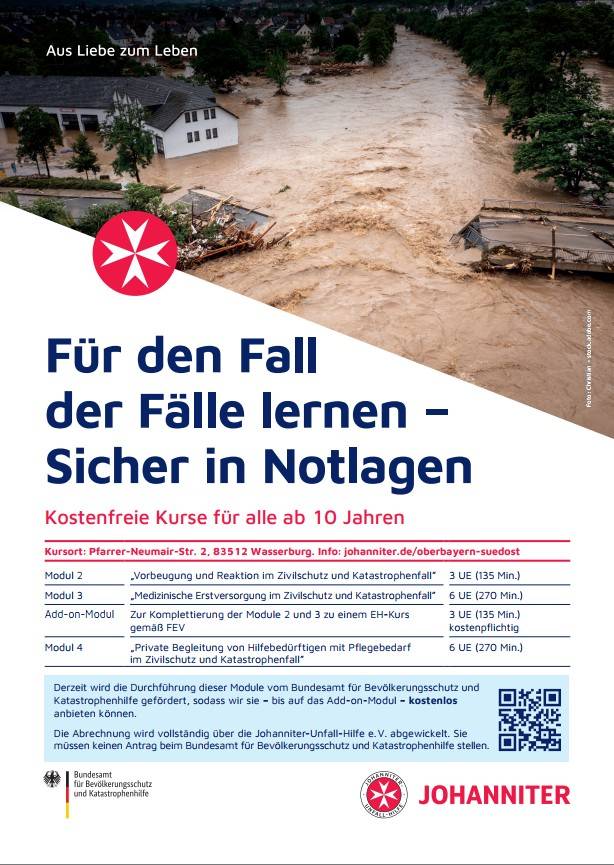 Die Johanniter bieten in der Region Kurse zur persönlichen Notfallvorsorge und Erste Hilfe für außergewöhnliche Lagen an – geeignet für alle ab 10 Jahren.