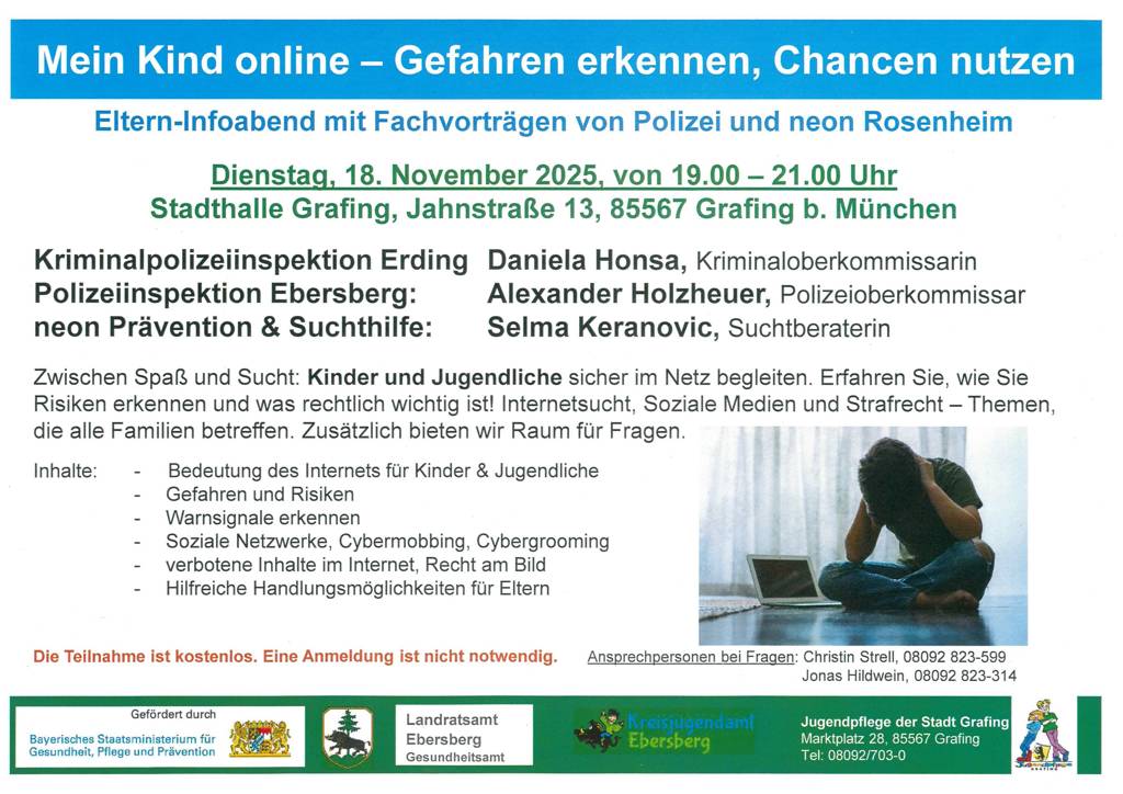 das Landratsamt Ebersberg lädt zu einer kostenlosen, öffentlichen Veranstaltung zum Thema Medienkompetenz & Medienrecht ein.