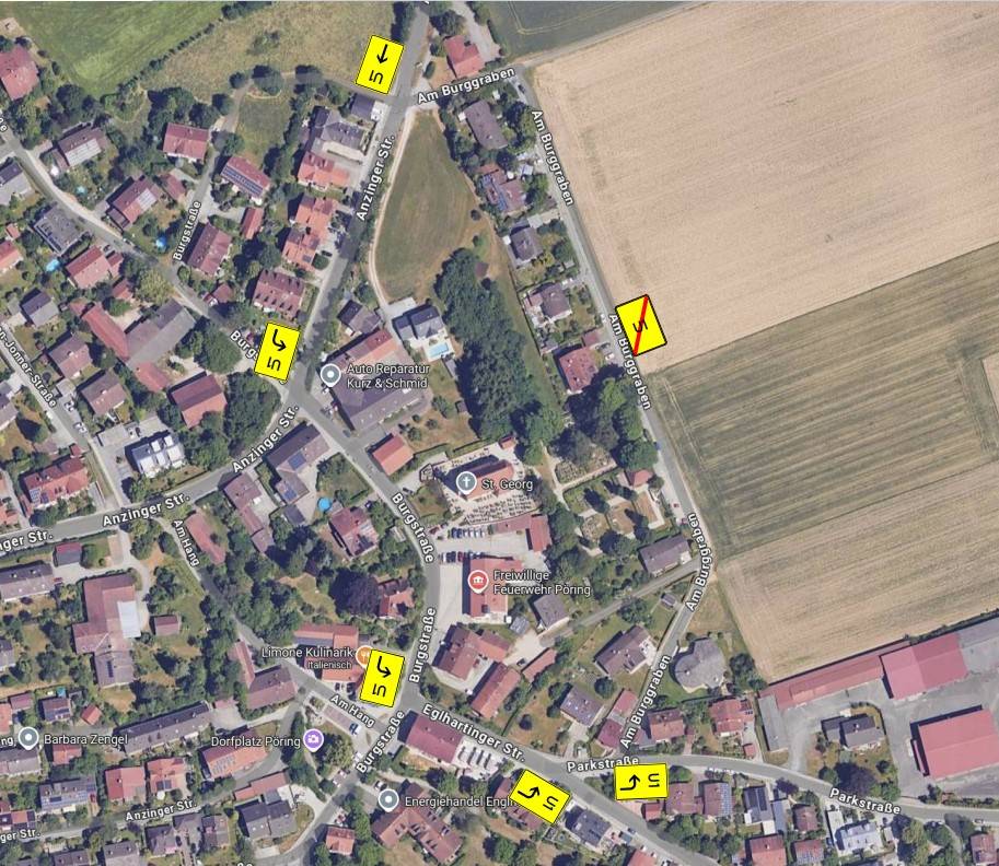 Die Umleitung läuft über die Anzinger Straße – Burgstraße – Eglhartinger Straße – Parkstraße (siehe Umleitungsplan anbei). Die Anwohner werden individuell von der Firma informiert, die die Arbeiten durchführt.
