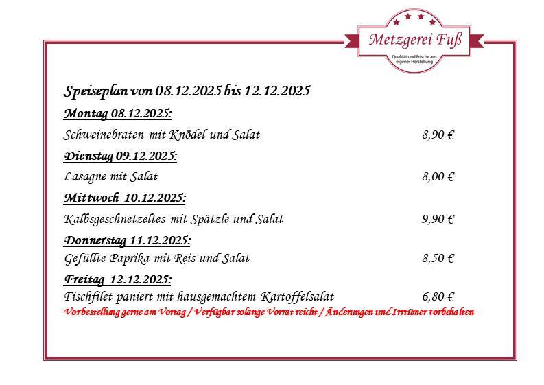 Speiseplan von 08.12. bis 12.12.2025