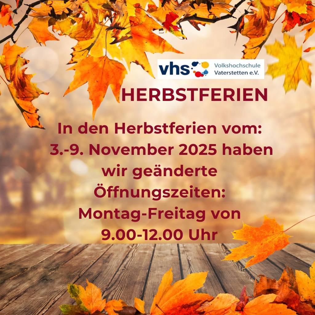 Bitte beachten Sie. Nächste Woche, vom 03.-09.11.2025 sind in Bayern Herbstferien. Aus diesem Grund haben auch wir geänderte Öffnungszeiten: