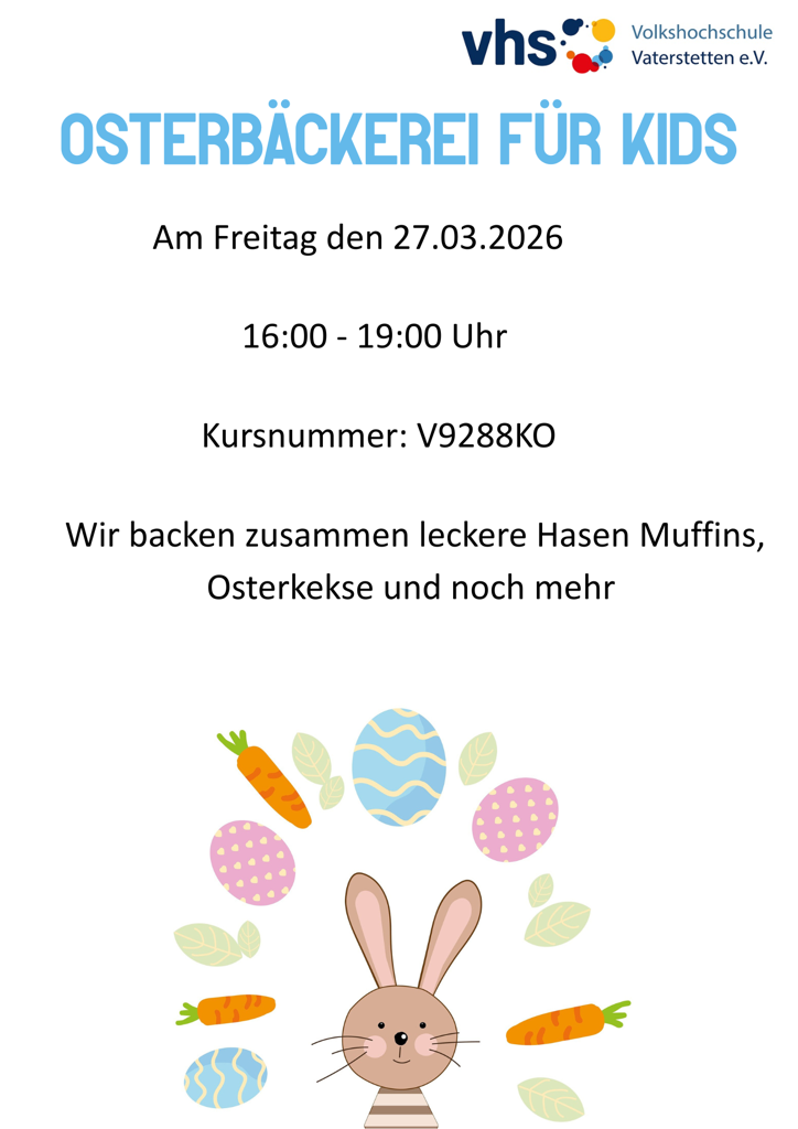 Die Kinder dürfen nach Anleitung töpfern oder eigene Ideen umsetzen. Die kleinen Kunstwerke werden farbig gestaltet und gebrannt. Materialgebühr und Brennkosten in Höhe von 5,00 EUR sind in der Kursgebühr enthalten. Abholtermin wird, nach Absprache, in der Woche vor den Osterferien sein.