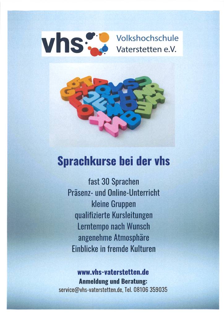 Es gibt noch viele freie Plätze in den Sprachkursen bei der VHS Vaterstetten e.V.