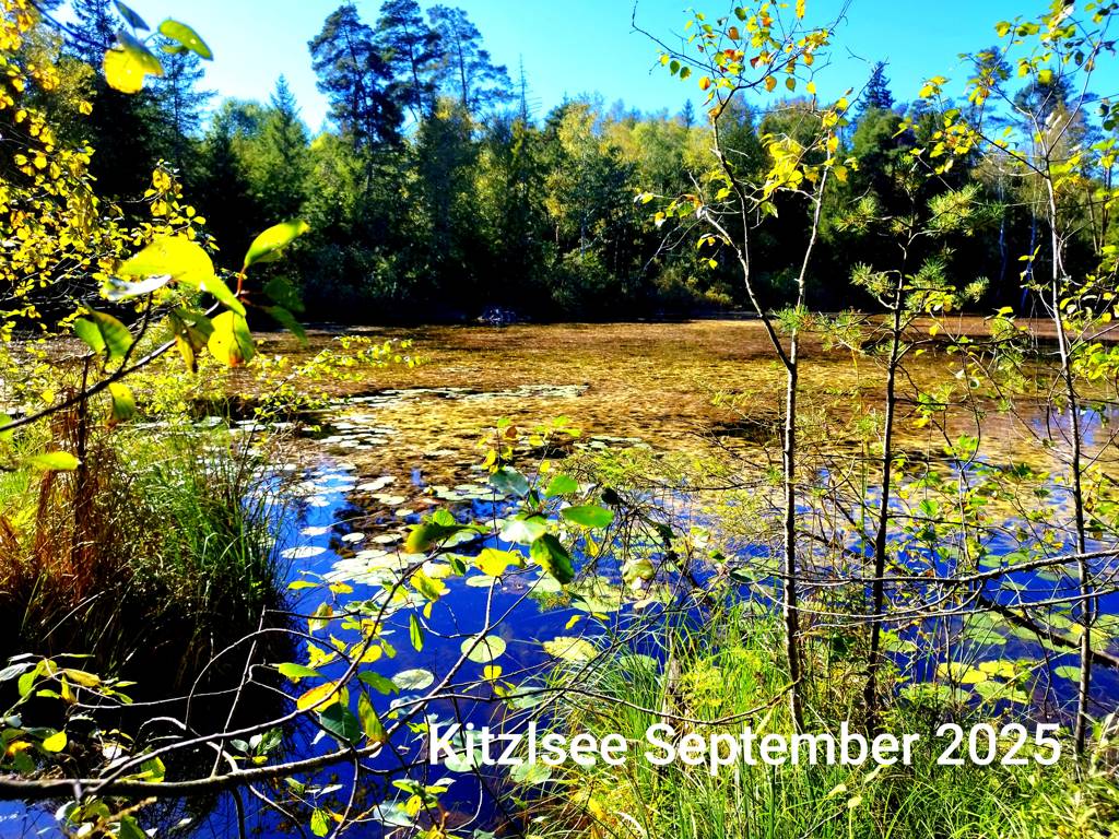 Ein schöner Spätsommertag, ideal zum Radeln. Wir sind vorbei an Glonner's Hühnerhof bis an den Waldrand , dann auf die alte Bucher Straße. Am Parkplatz ging's diesmal rechts auf den Schotterweg, der uns auf den Panoramaweg geführt hat. Weiter auf der Steinseestraße und in Niederseeon den Weg rauf bis zum Kitzlsee. Es waren keine Mücken am See, der von den Seerosen fast zugewuchert ist. Früher war es ein kleiner Badesee, heute ein geschütztes Biotop. Wir sind wieder auf die Straße bis nach Schlacht und dort abgebogen zur Grotte. Ein ruhiger Ort am Waldrand mit Blick auf die Kampenwand und Großvenediger. Guter Platz, um seine Gedanken zu sortieren. Danach wurde es ziemlich ruppig, der "Waldweg" nach Oberpframmern war eine echte Herausforderung mit knorrigen Wurzeln, Matsch und Brennnesseln. Jetzt auf den Heimweg über Harthausen nach Möschenfeld. Durch den Schwammerlwald und nach 31km waren wir wieder am Herzogplatz. Die Tour war anspruchsvoll, aber allen hat's gefallen.
